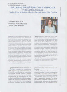 Cuvinte-cheie: serviciu de bibliotecă, evaluarea serviciilor, bibliotecă publică, satisfacția utilizatorilor, transformare digitală, instrumente de evaluare, îmbunătățirea calității serviciilor.